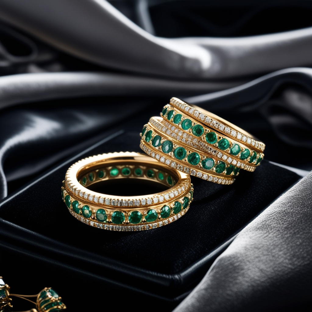 Estas argollas de matrimonio están elaboradas en oro de 24K o 18K, con un diseño que exuda lujo y sofisticación. Sus delicadas incrustaciones de finas esmeraldas aportan un vibrante contraste verde, resaltando la pureza y el brillo del oro. Además, el detalle de las gemas está cuidadosamente dispuesto en patrones simétricos, lo que realza su elegancia y convierte estas piezas en joyas únicas e invaluables. Ideales para parejas que buscan simbolizar su unión con distinción y buen gusto